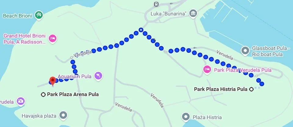 Udaljenost između hotela Park Plaza Arena 3* i Park Plaza Histria 4* je 1km.